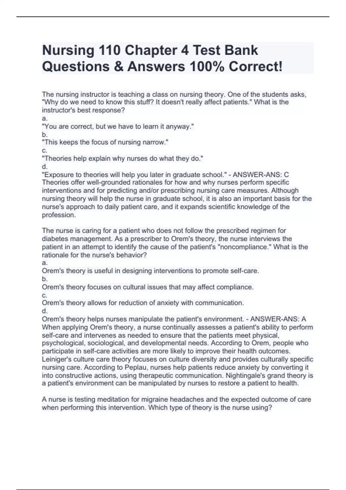 Orem's theory helps nurses manipulate the patient's environment. - ANSWER-ANS: A