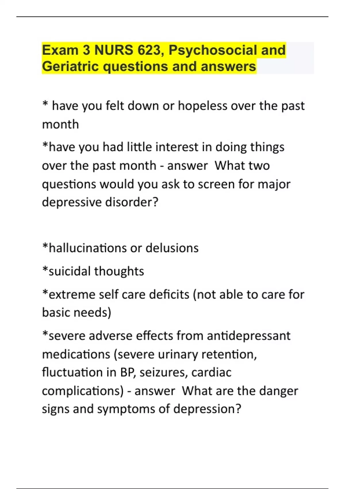 Exam 3 NURS 623, Psychosocial and Geriatric questions and answers