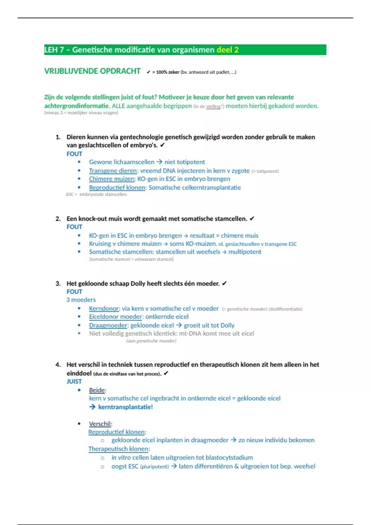 Zijn de volgende stellingen juist of fout? Motiveer je keuze door het geven van relevante