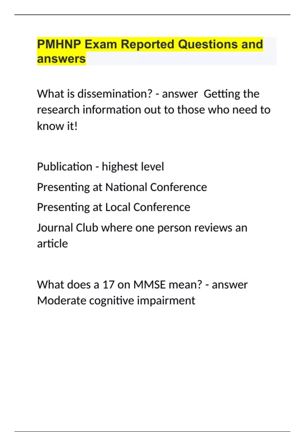 PMHNP Exam Reported Questions and answers
