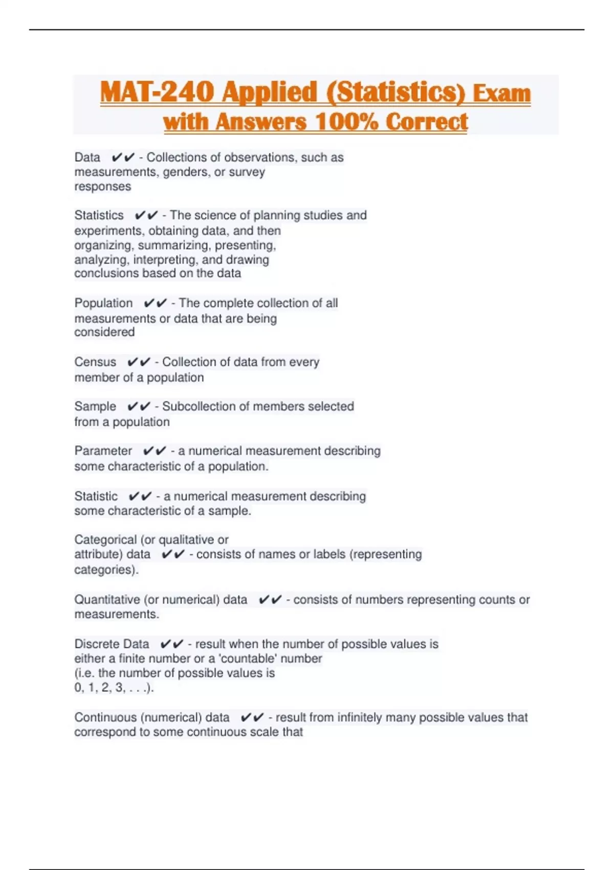 mat 240 applied statistics exam with answers