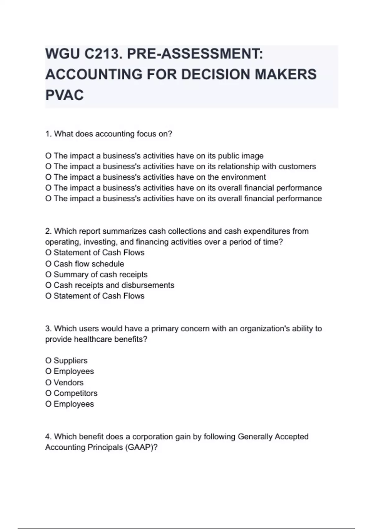 wgu c213 pre assessment accounting for decision