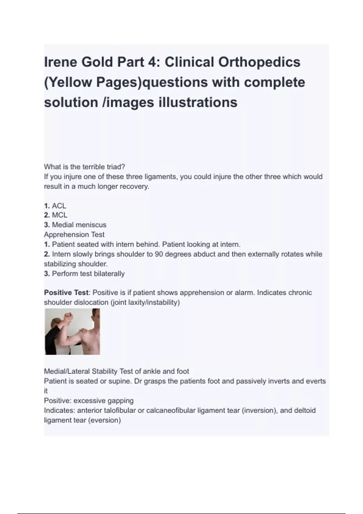 Irene Gold Part 4_ Clinical Orthopedics (Yellow Pages)questions with complete solution