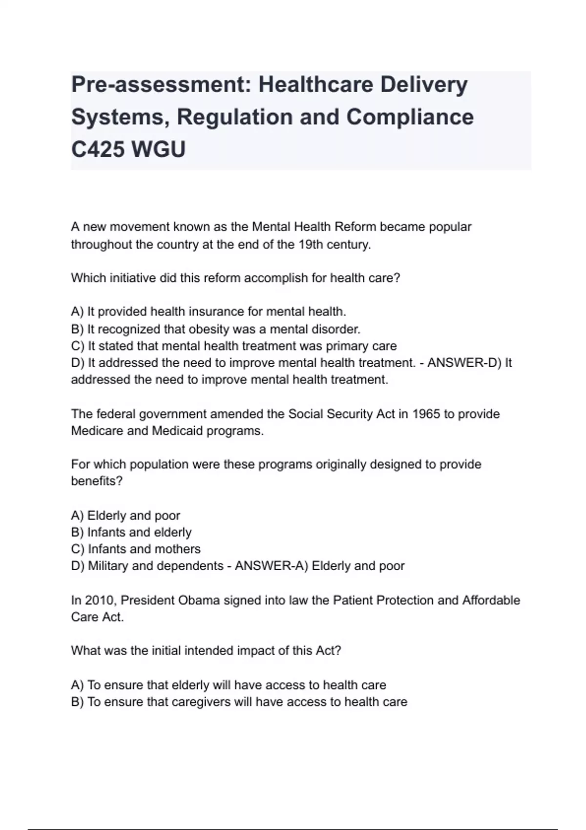 Pre-assessment_ Healthcare Delivery Systems, Regulation and Compliance C425 WGU