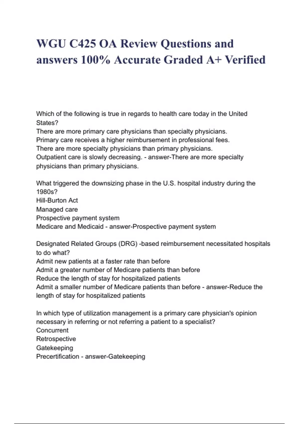 WGU C425 OA Review Questions and answers 100% Accurate Graded A+ Verified