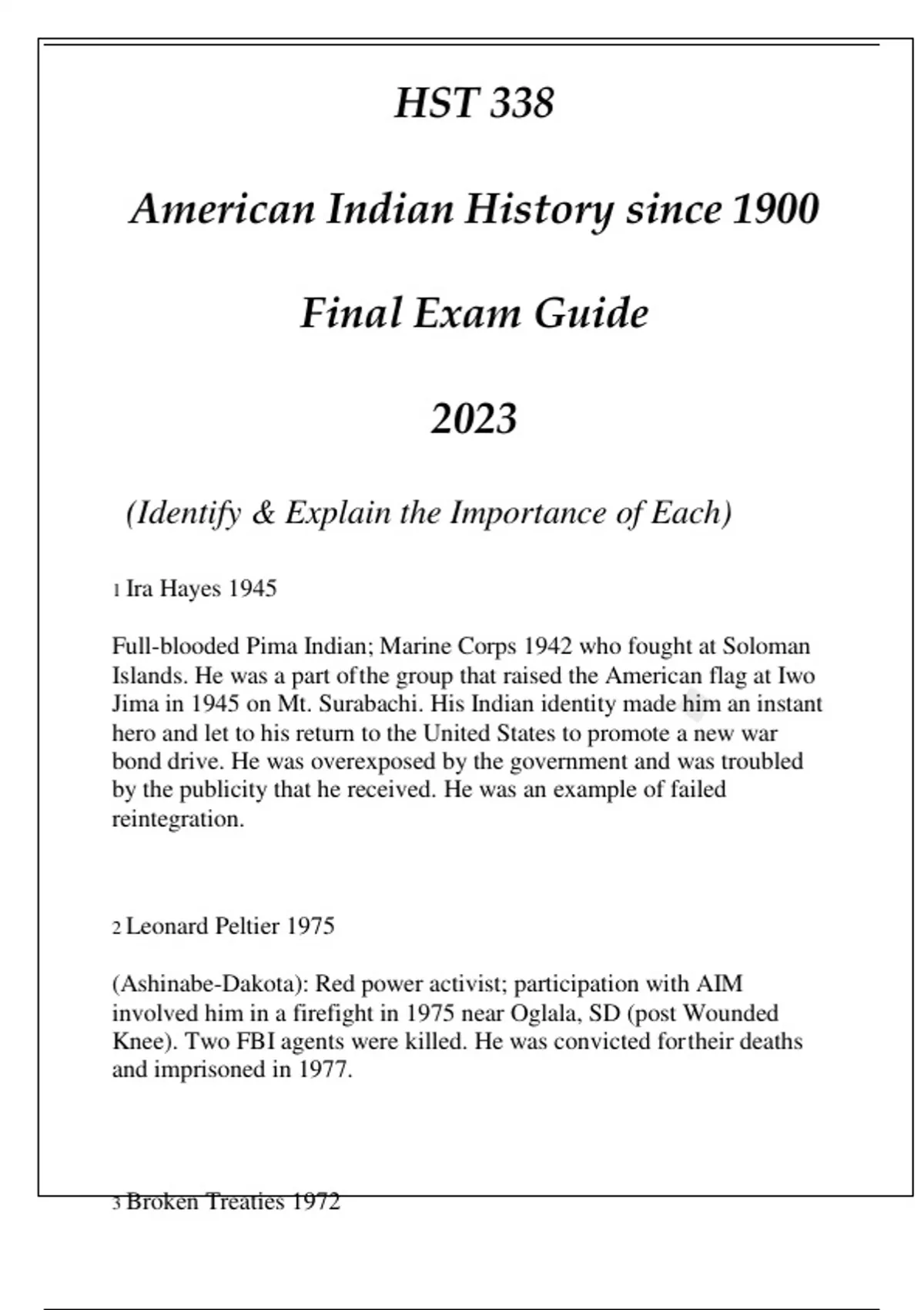 (ASU) HST 338 American Indian History Since 1900 Final Exam 2023(ASU) HST 338 American Indian History Since 1900 Final Exam 2023(ASU) HST 338 American Indian History Since 1900 Final Exam 2023