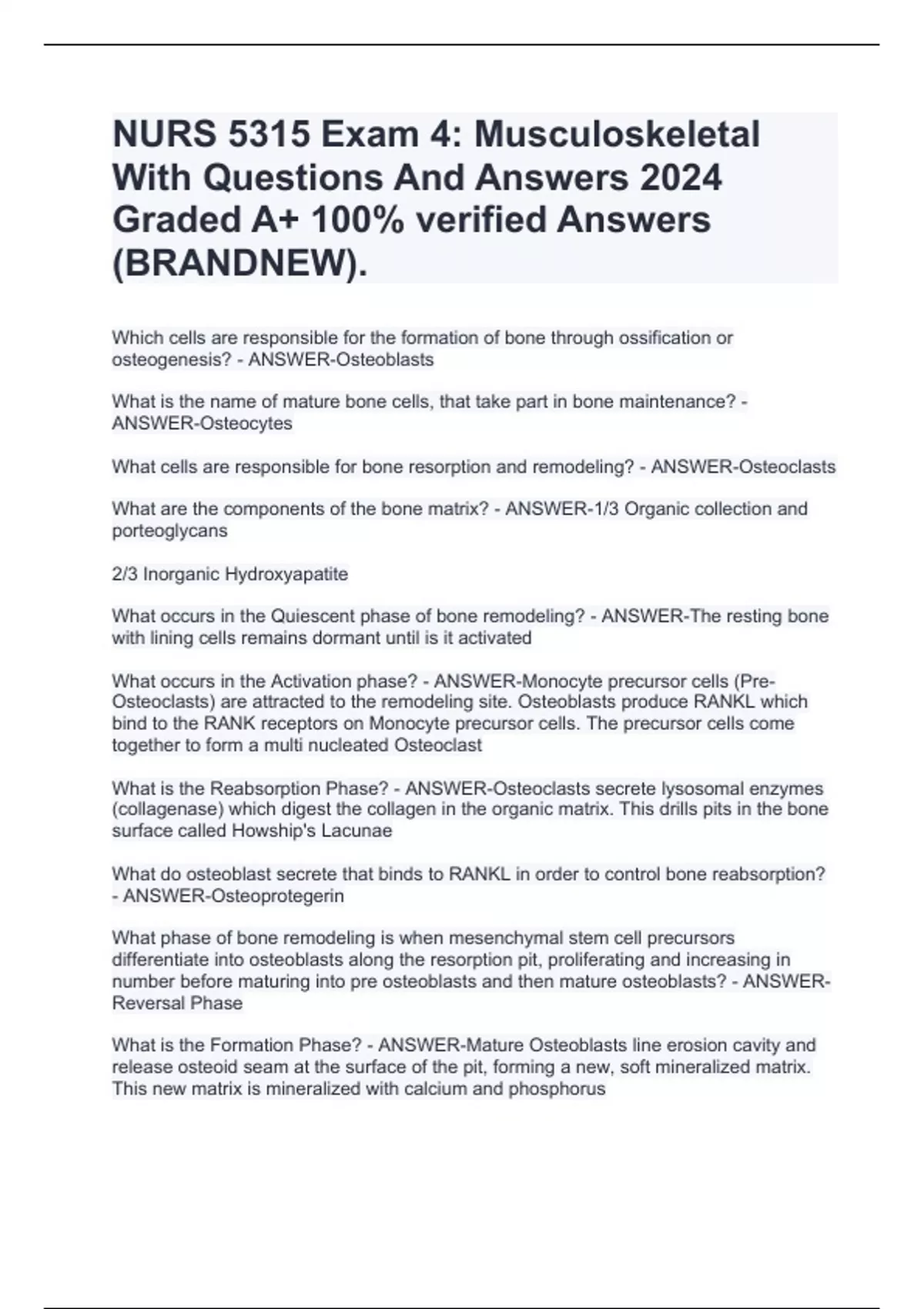 NURS 5315 Exam 4: Musculoskeletal With Questions And Answers 2024 Graded A+ 100% verified Answers (BRANDNEW).