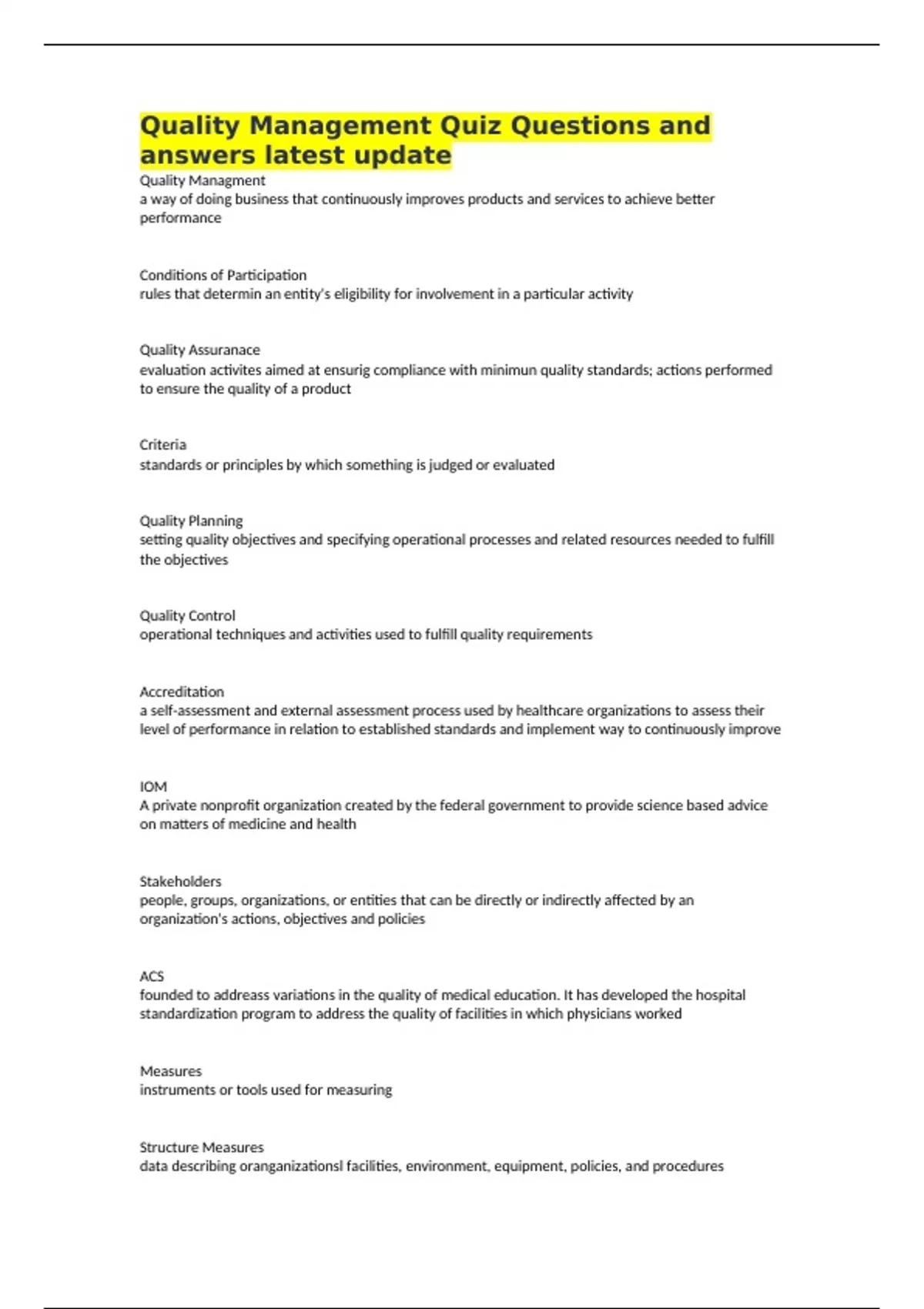 Quality Assuranace