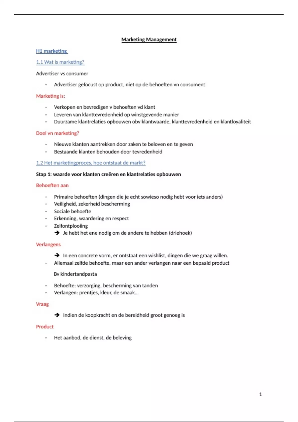 - Marketingmanagement = selecteren van doelmarkten en het opbouwen van winstgevende