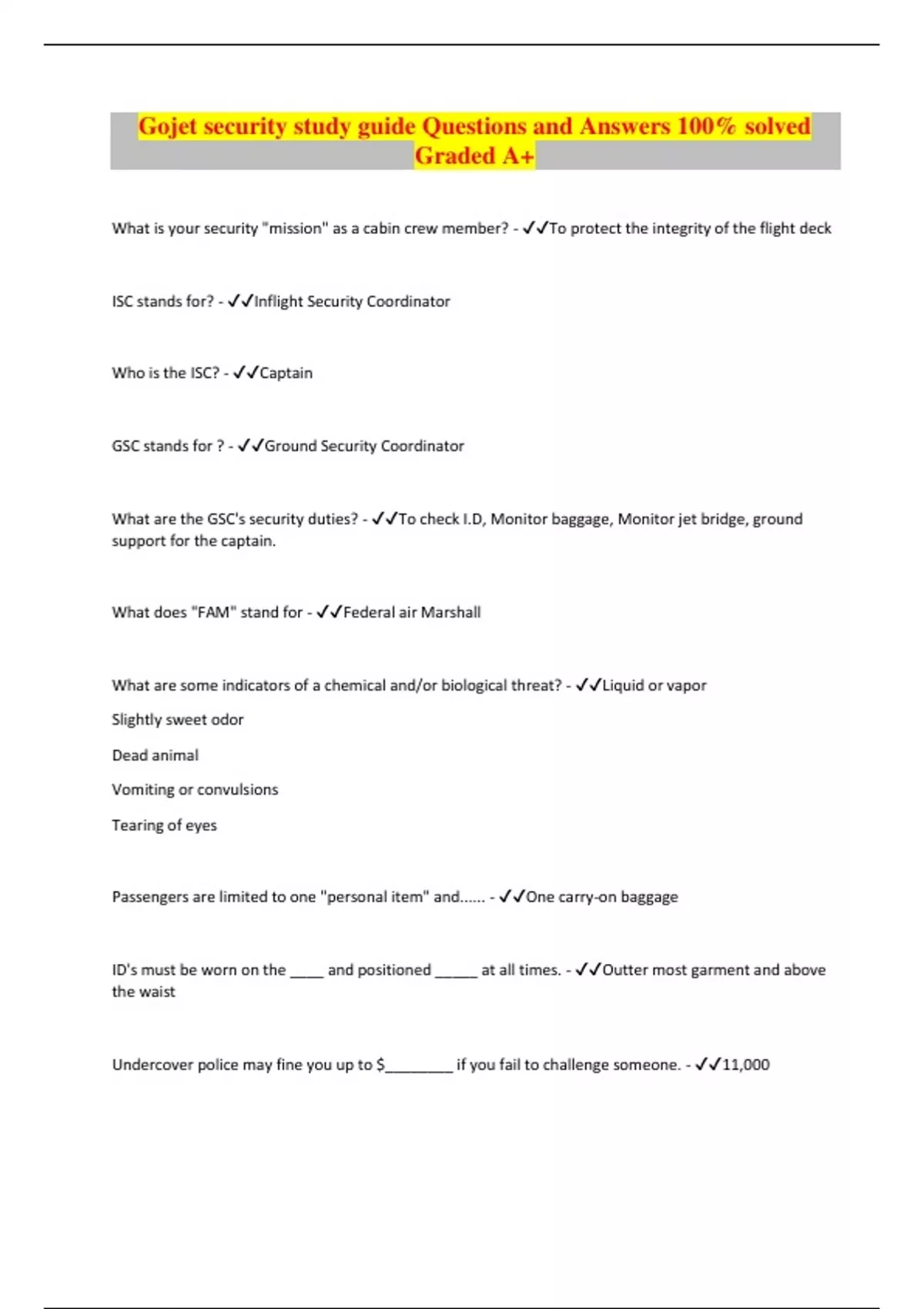 Gojet security study guide Questions and Answers 100% solved Graded A+