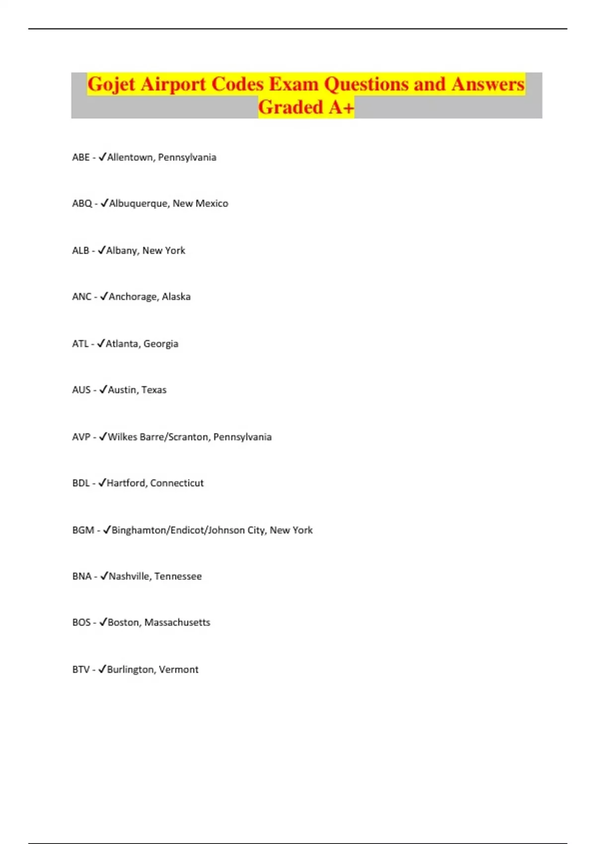 Gojet Airport Codes Exam Questions and Answers Graded A+