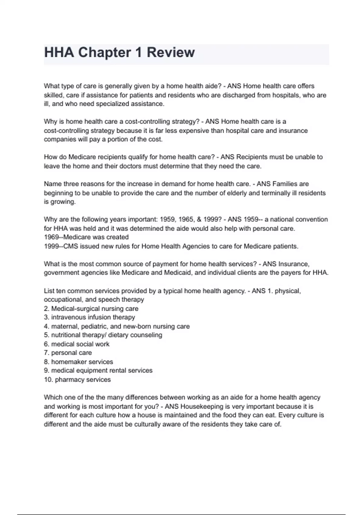 HHA Chapter 1 Review Exam 2024/2025 Questions With Completed & Verified Solutions.