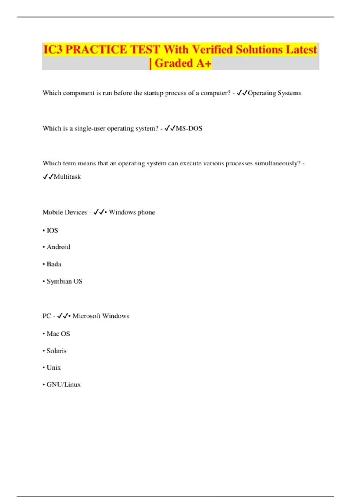 COMPLETED SOLUTION PACK FOR IC3 COMPUTER FUNDAMENTALS {IC3 CERTIFICATION/COMPUTER FUNDAMENTALS/IC3 GS5,GS6} with 100% Verified Solutions | Rated A+