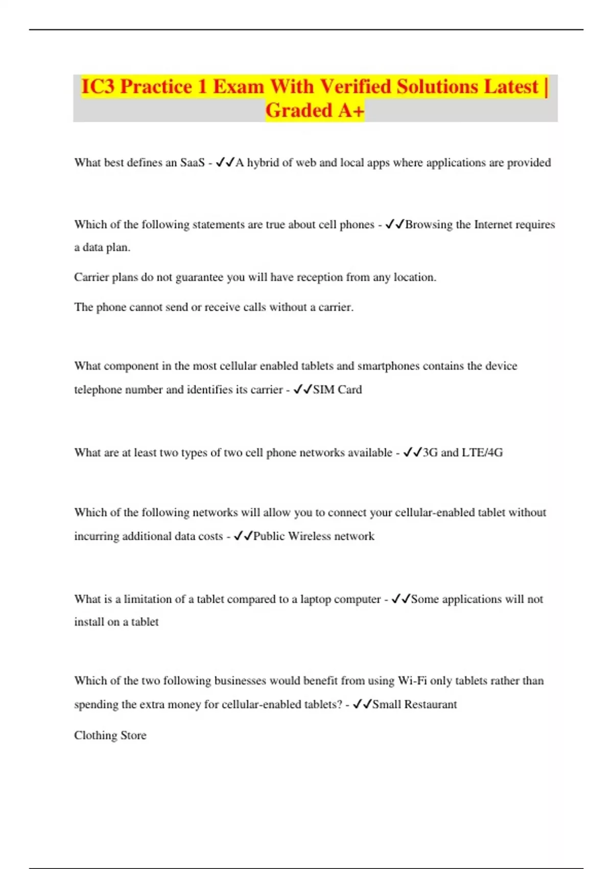 IC3 Practice 1 Exam With Verified Solutions Latest | Graded A+
