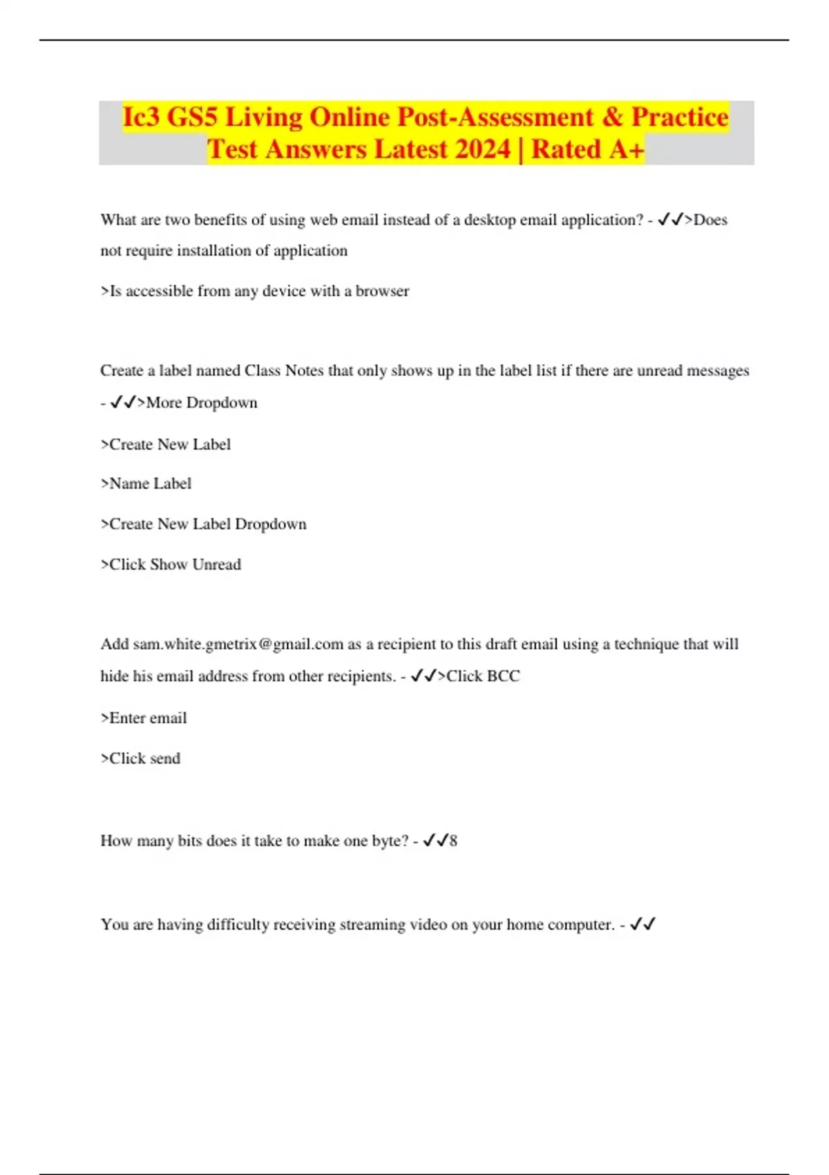 Ic3 GS5 Living Online Post-Assessment & Practice Test Answers Latest 2024 | Rated A+