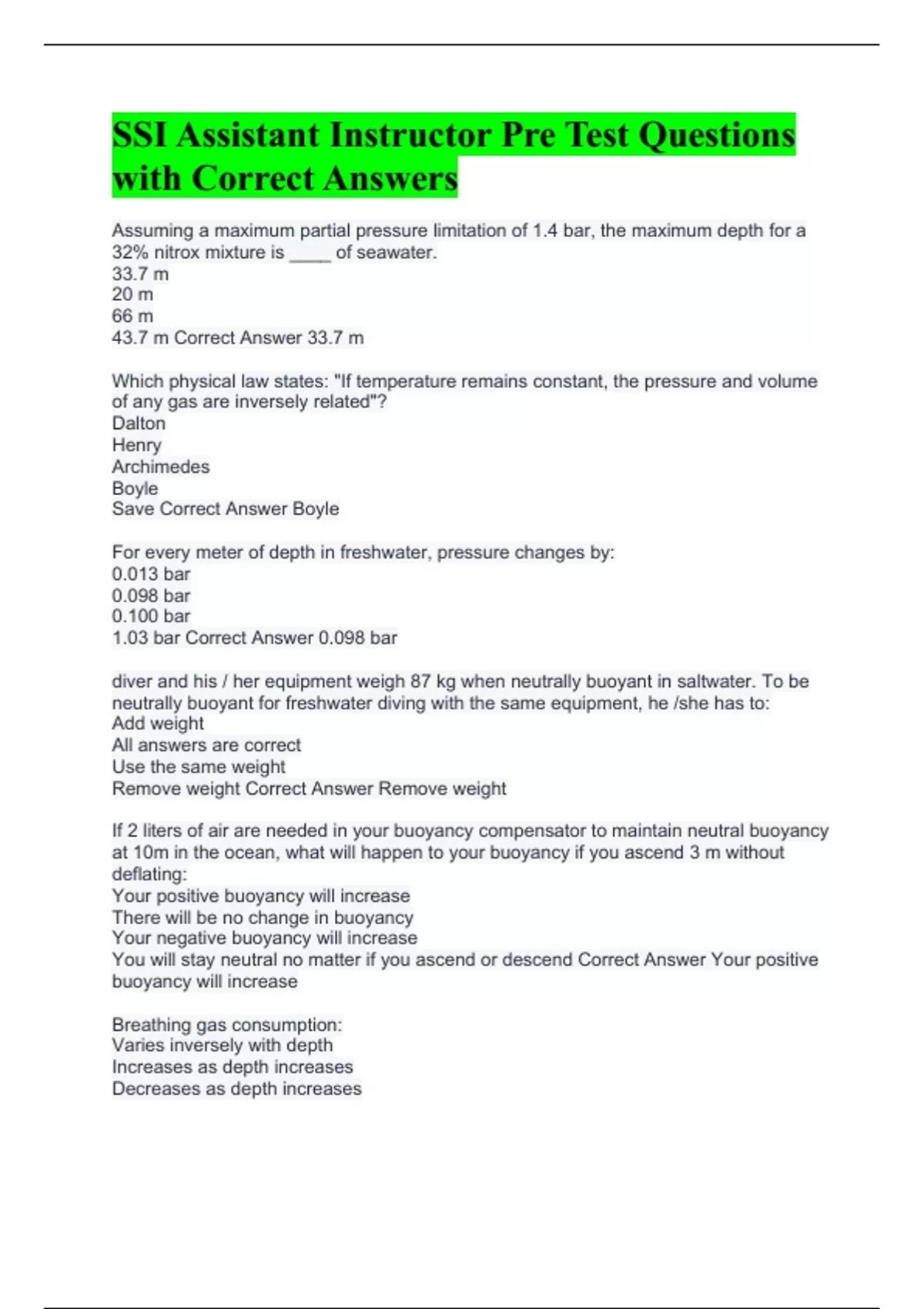 SSI Assistant Instructor Pre Test Questions with Correct Answers