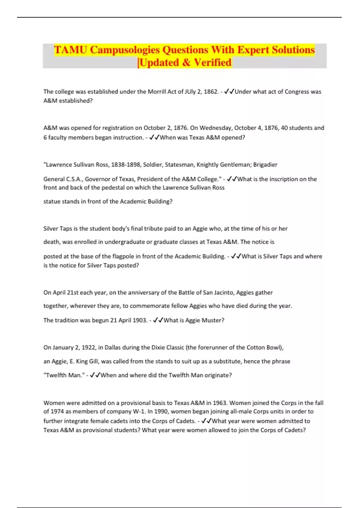 TAMU Campusologies Questions With Expert Solutions |Updated & Verified