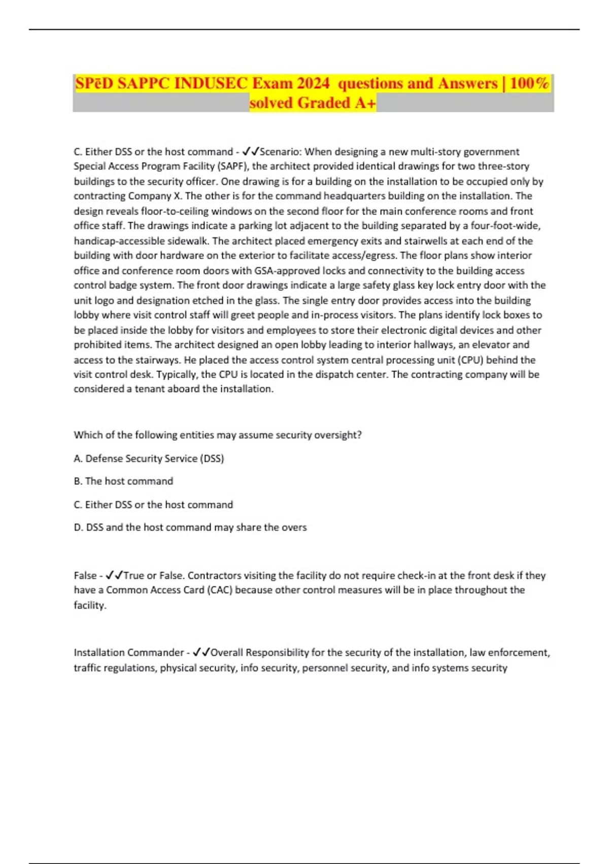 SPēD SAPPC INDUSEC Exam 2024 questions and Answers | 100% solved Graded A+