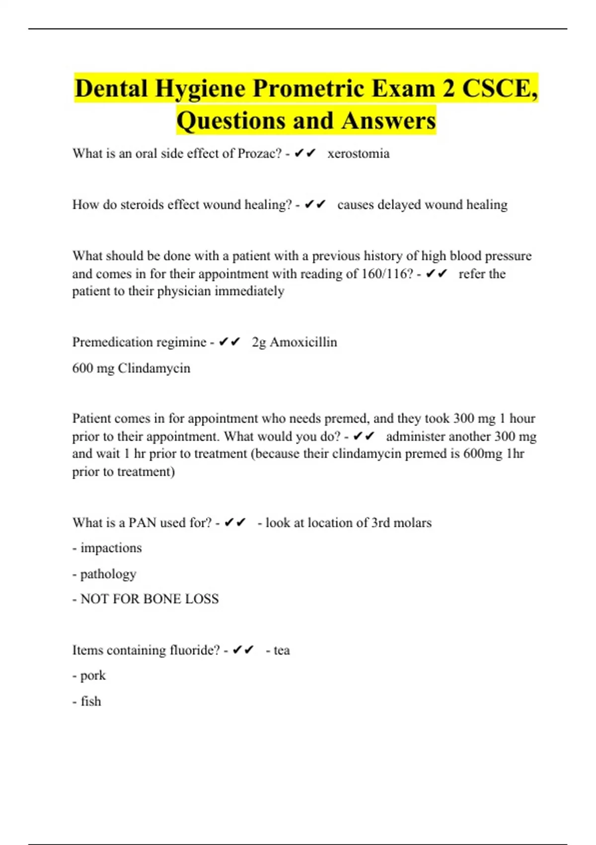 Dental Hygiene Prometric Exam 2 CSCE, Questions and Answers
