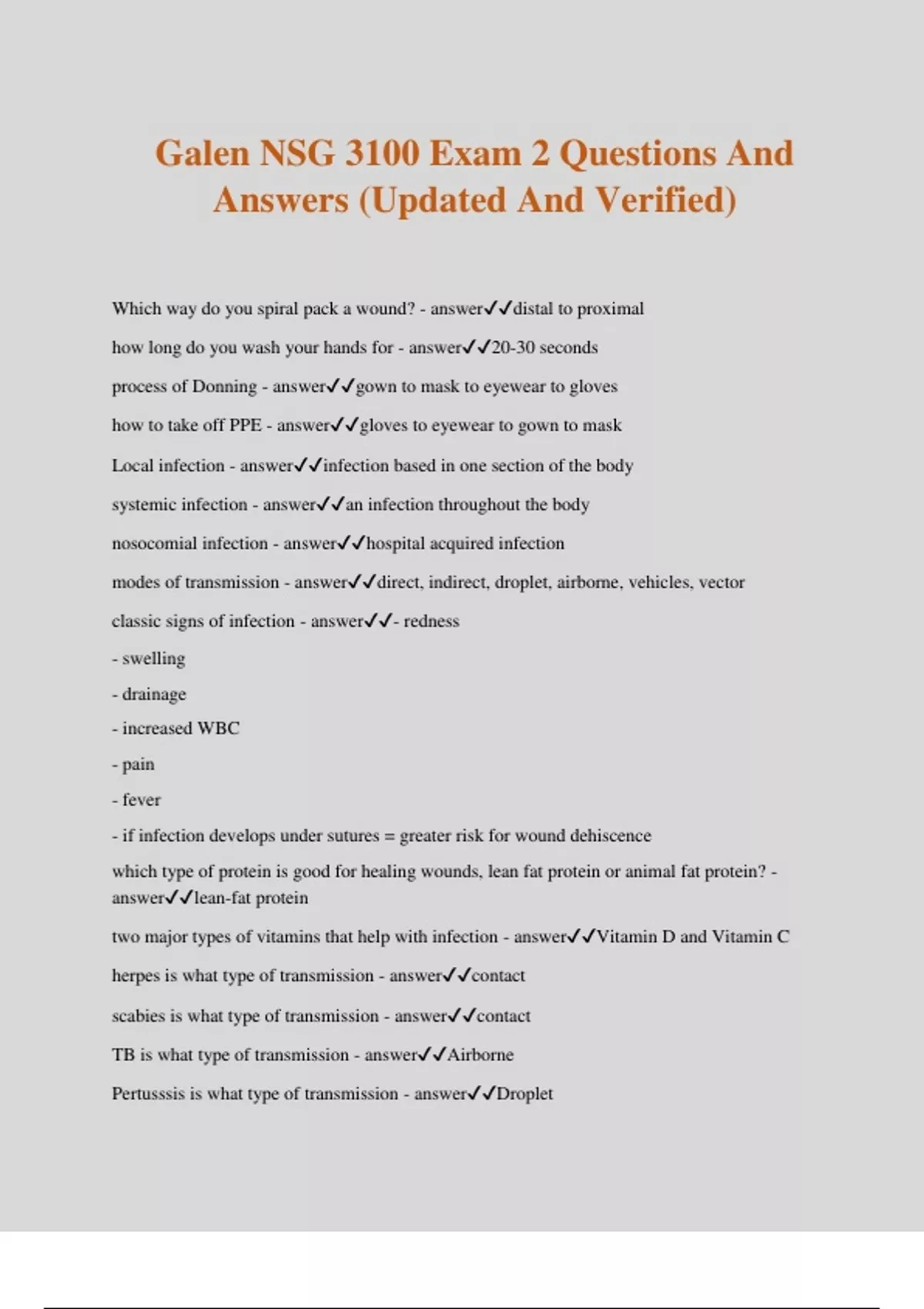 Galen NSG 3100 Exam 2 Questions And Answers (Updated And Verified)