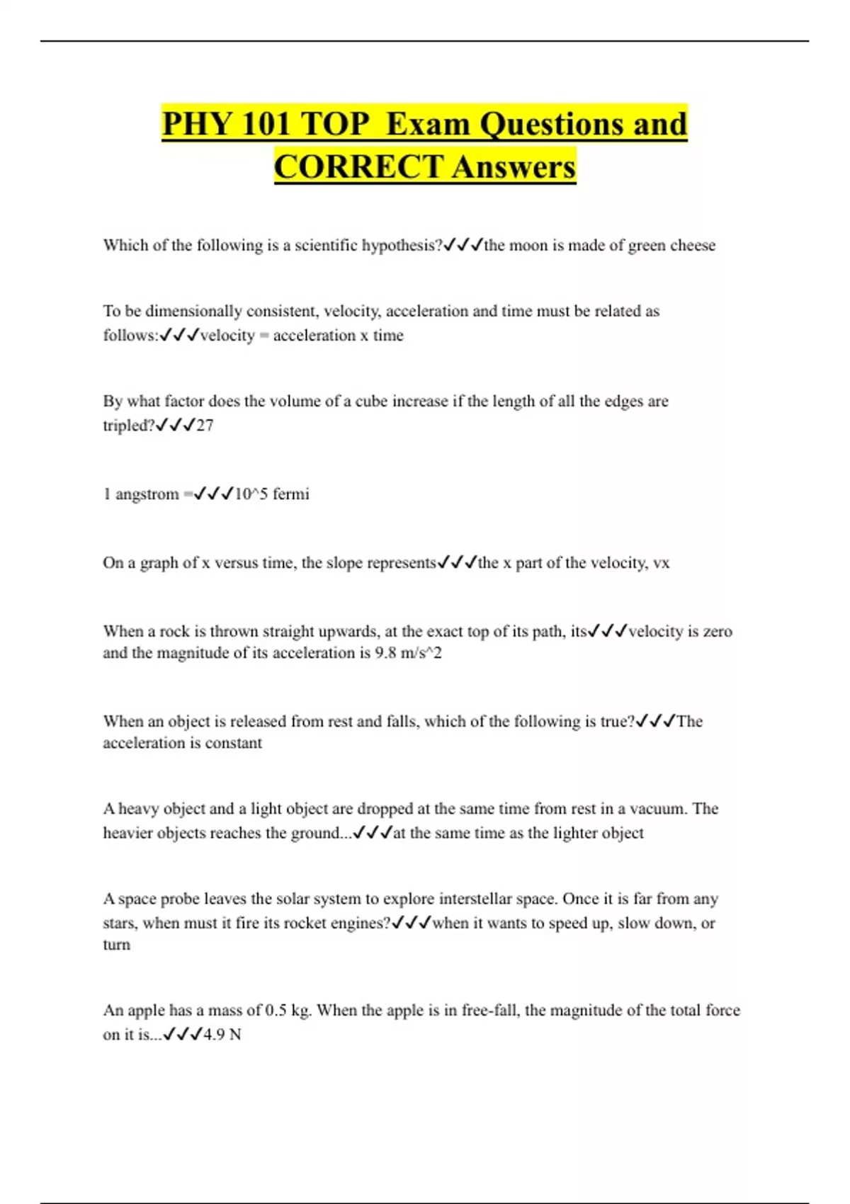 PHY 101 TOP Exam Questions and CORRECT Answers