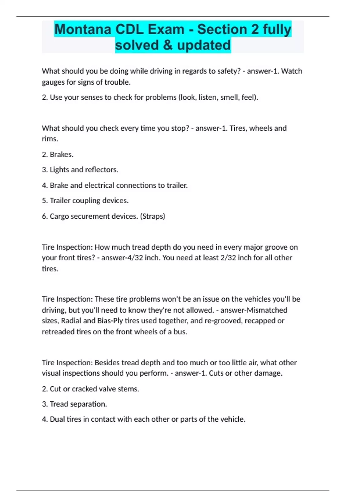 Montana CDL Exam - Section 2 fully solved & updated