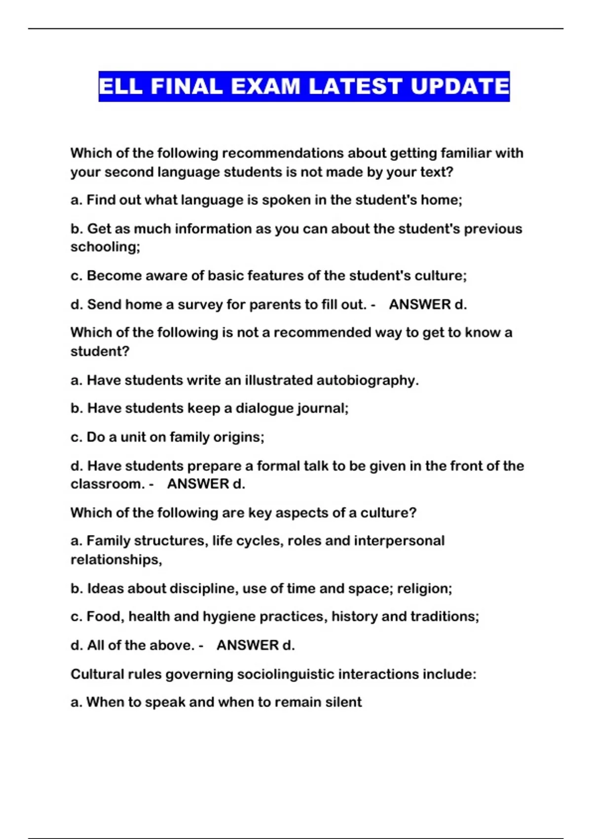 ELL FINAL EXAM LATEST UPDATE...