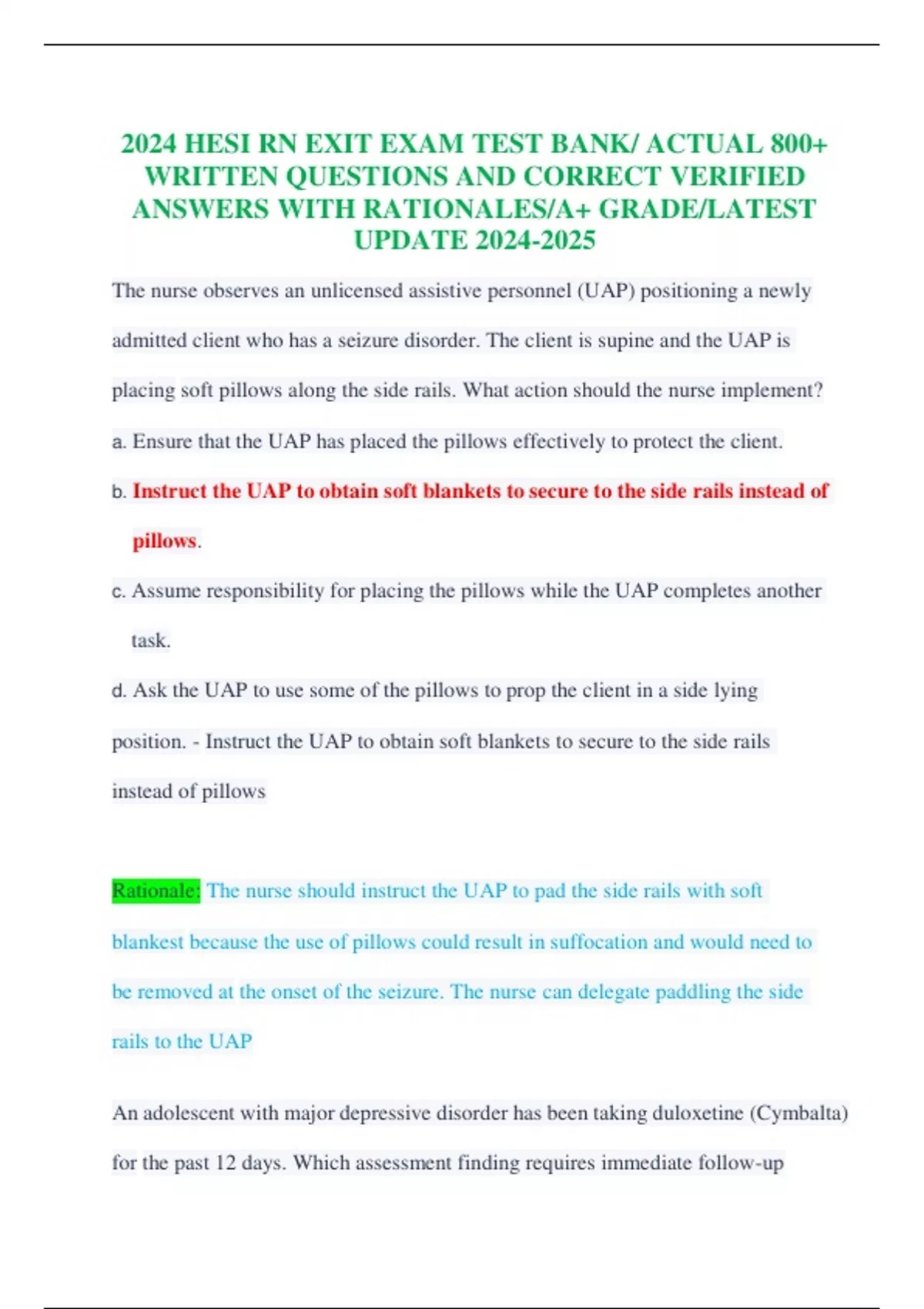 2024 HESI RN EXIT EXAM TEST BANK/ ACTUAL 800+ WRITTEN QUESTIONS AND CORRECT VERIFIED ANSWERS WITH RATIONALES/A+ GRADE/LATEST UPDATE