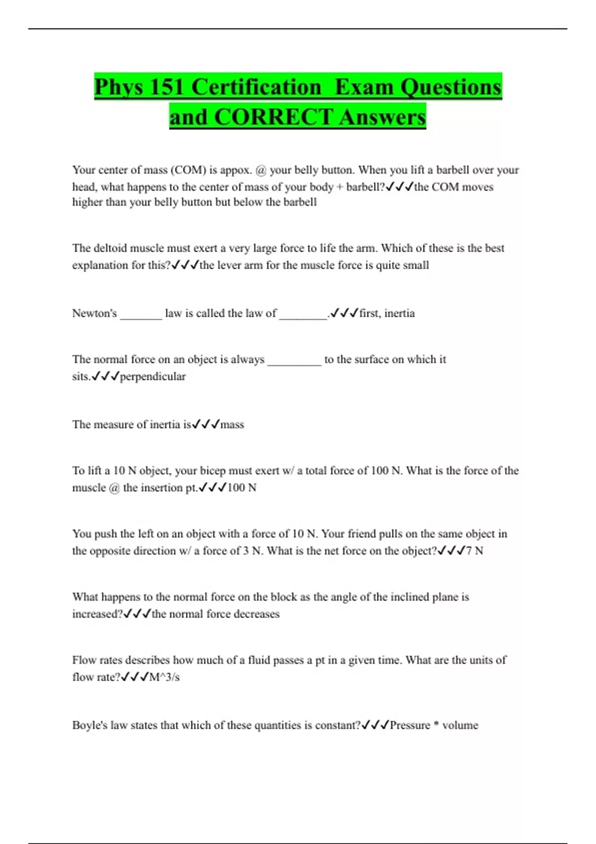 Phys 151 Certification Exam Questions and CORRECT Answers