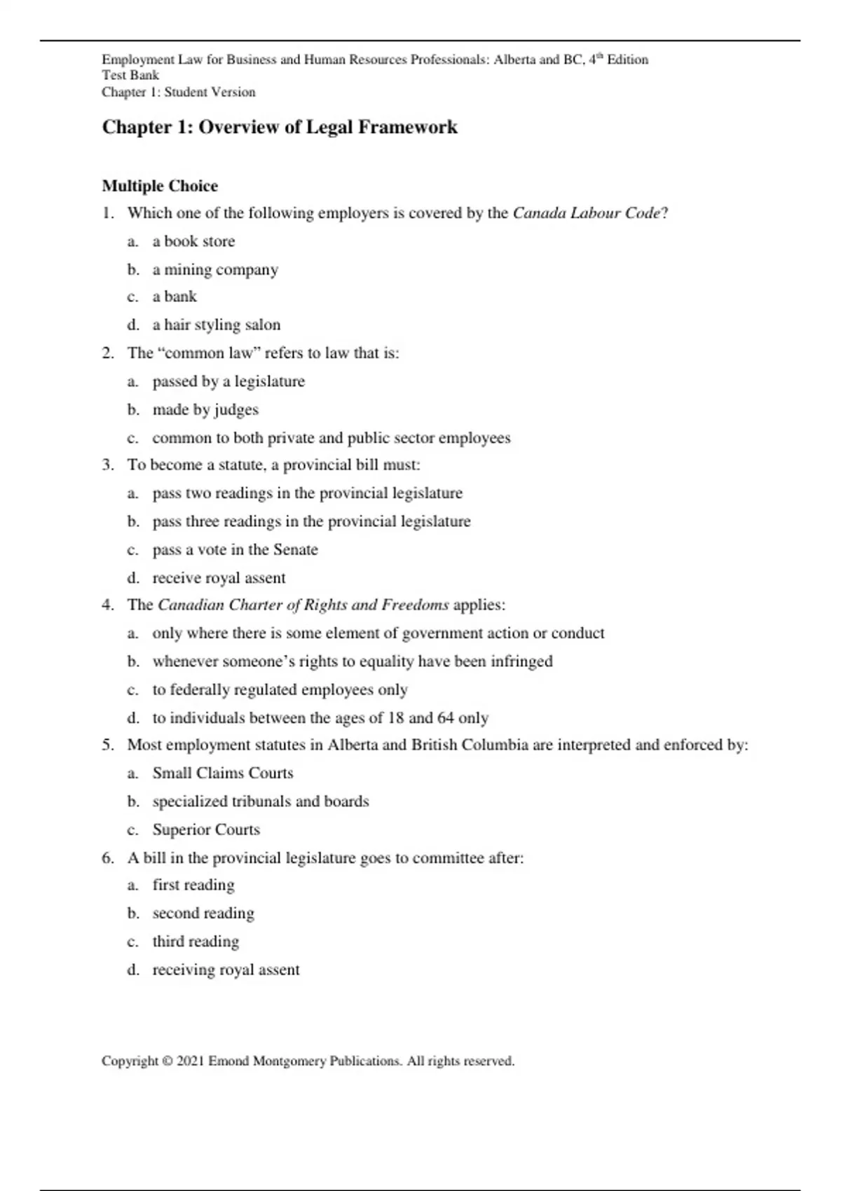 , Employment Law for Business and Human Resources Professionals: Alberta and BC, 4th Edition