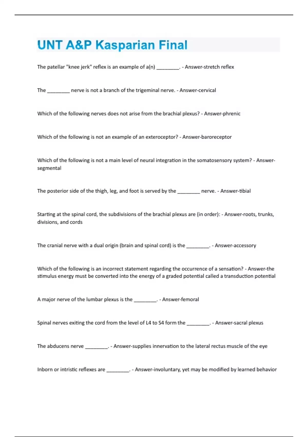 UNT A&P Kasparian Final New Update Actual Test with complete solution