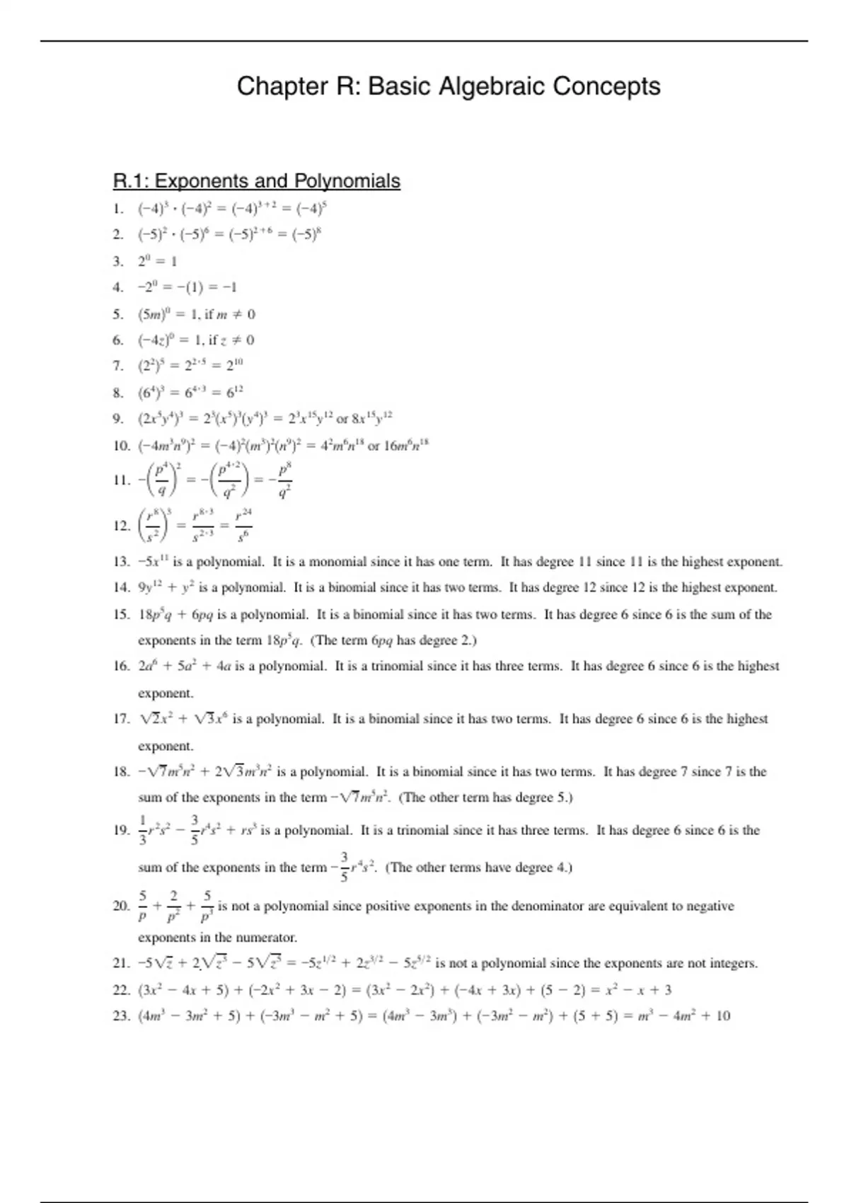 R.1: Exponents and Polynomials
