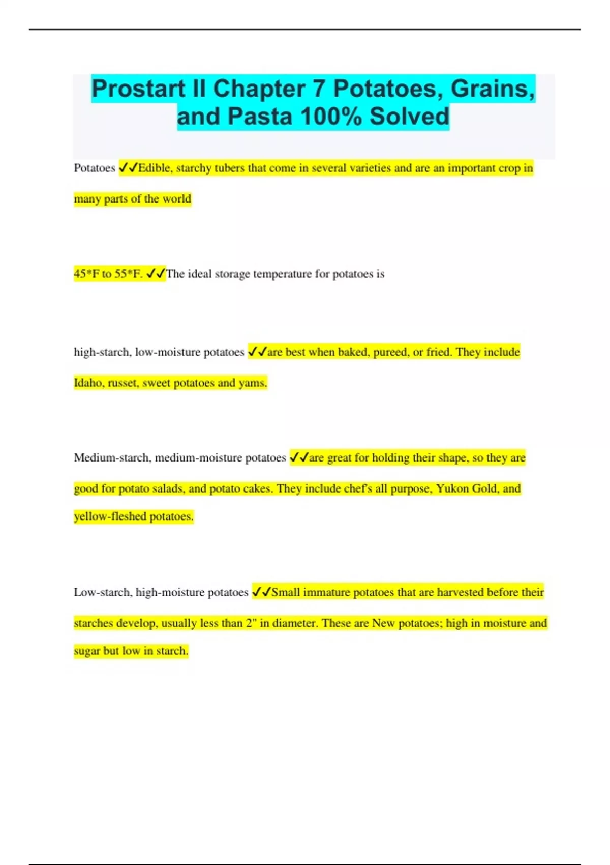 Prostart II Chapter 7 Potatoes, Grains, and Pasta 100% Solved