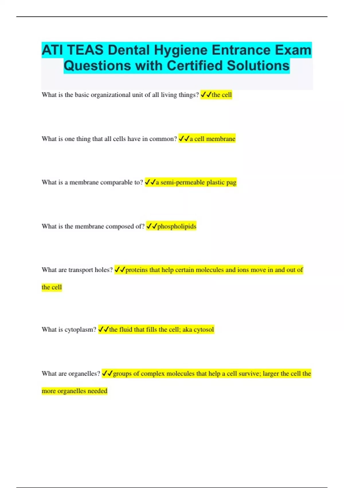 ATI TEAS Dental Hygiene Entrance Exam Questions with Certified Solutions