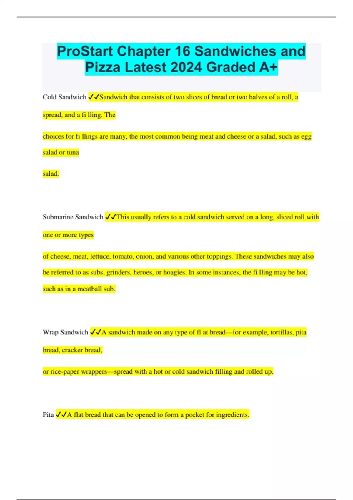ProStart Chapter 16 Sandwiches and Pizza Latest 2024 Graded A+