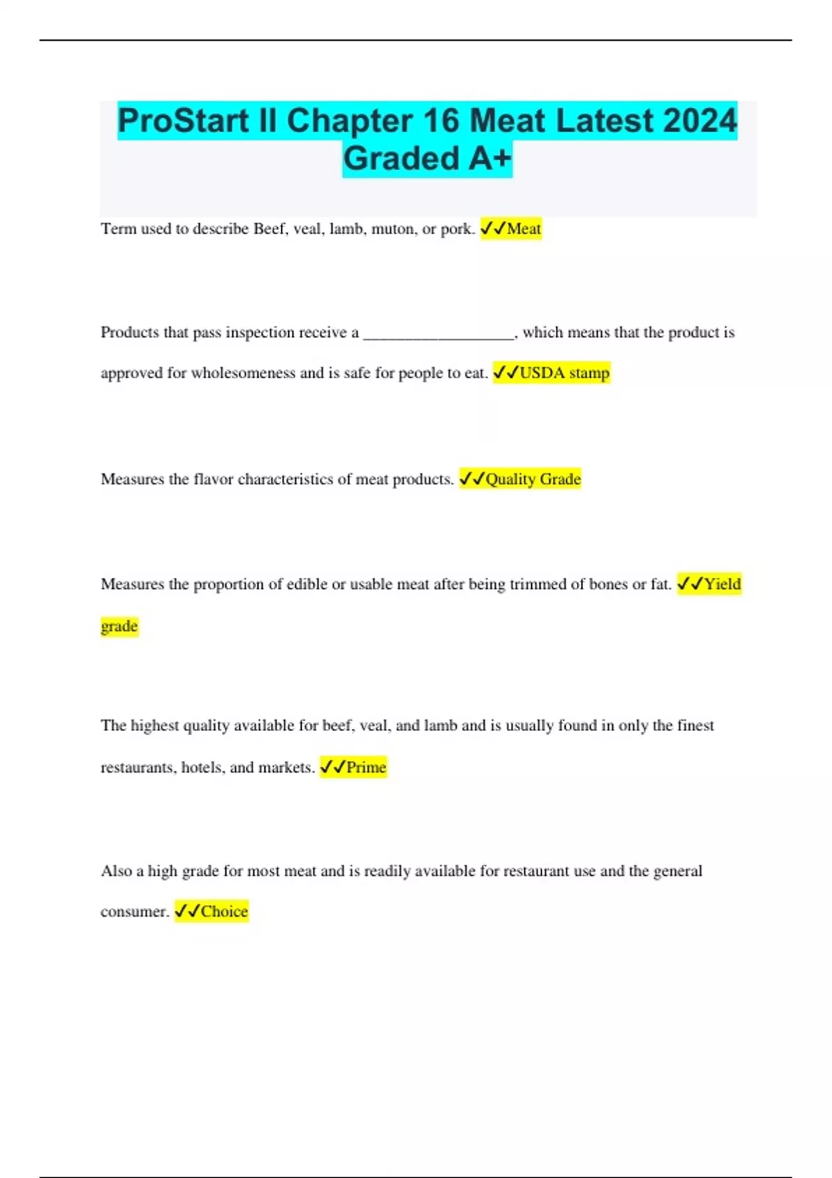 prostart ii chapter 16 meat latest 2024 graded a