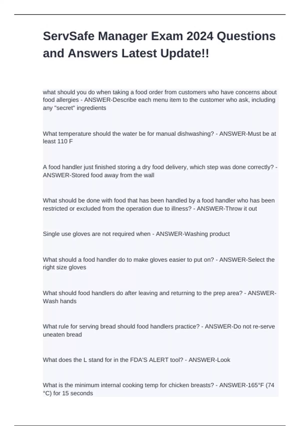 ServSafe Manager Exam 2024 Questions and Answers Latest Update!!