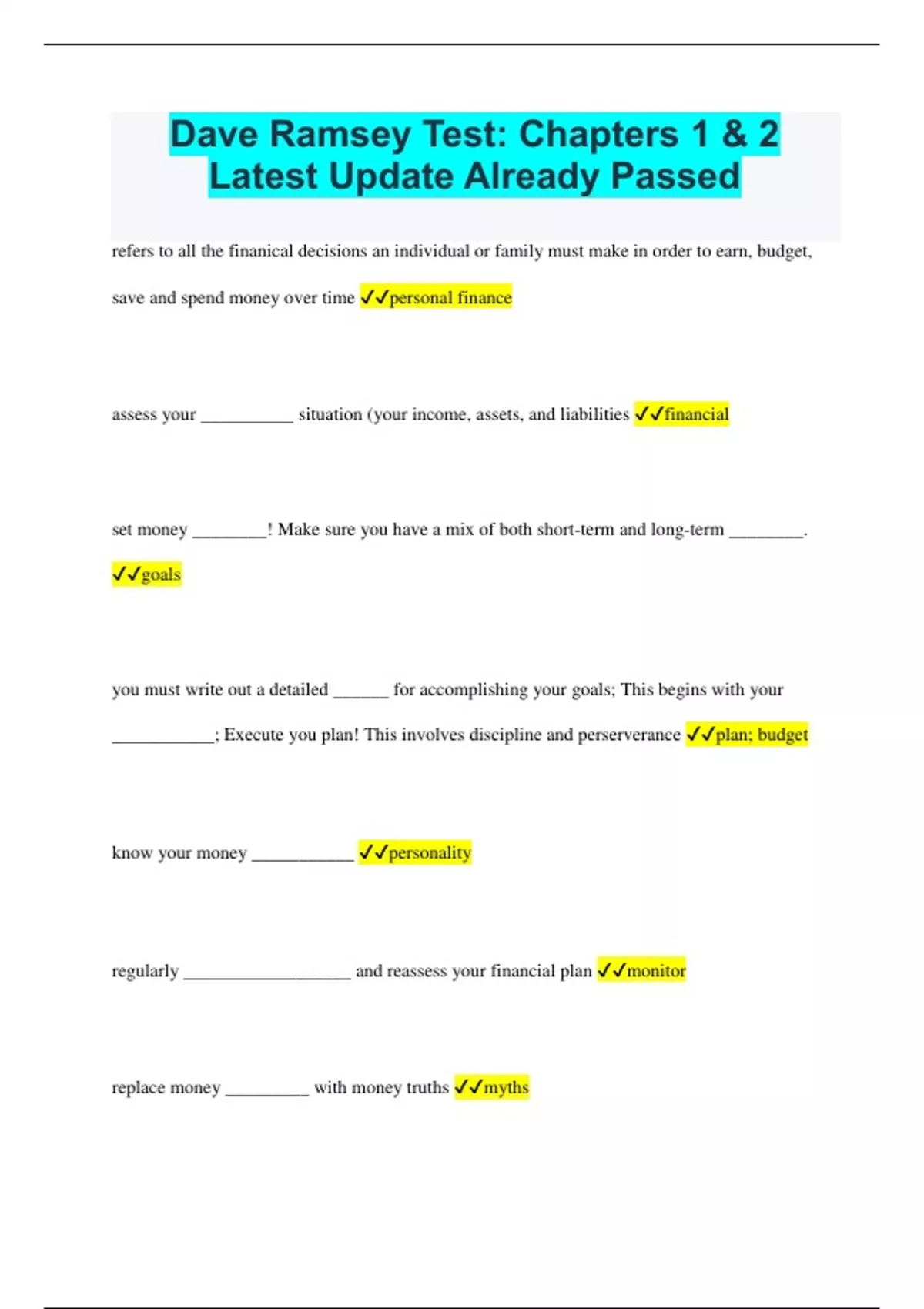 Dave Ramsey Test: Chapters 1 & 2 Latest Update Already Passed