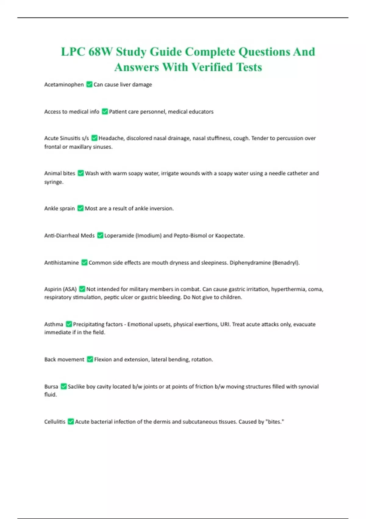 LPC 68W Study Guide Complete Questions And Answers With Verified Tests