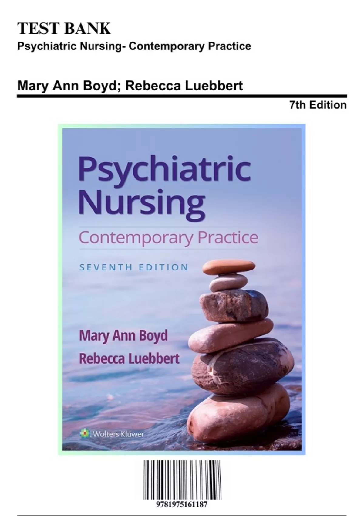 Test Bank for Psychiatric Nursing- Contemporary Practice, 7th Edition by Boyd, 9781975161187, Covering Chapters 1-43 | Includes Rationales