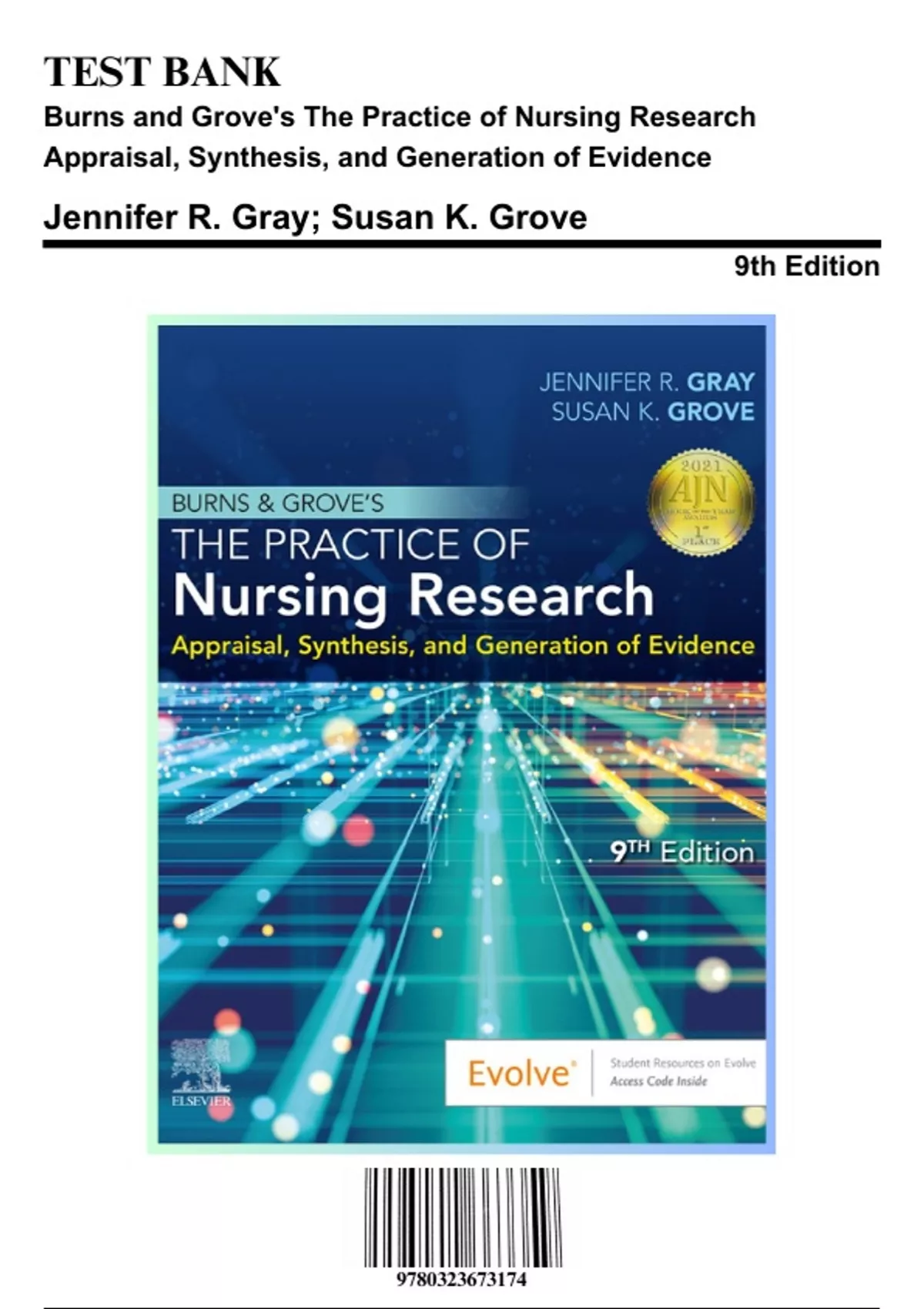 Test Bank for Burns and Grove's The Practice of Nursing Research Appraisal, Synthesis, and Generation of Evidence, 9th Edition by Grove, 9780323673174, Covering Chapters 1-29 | Includes Rationales