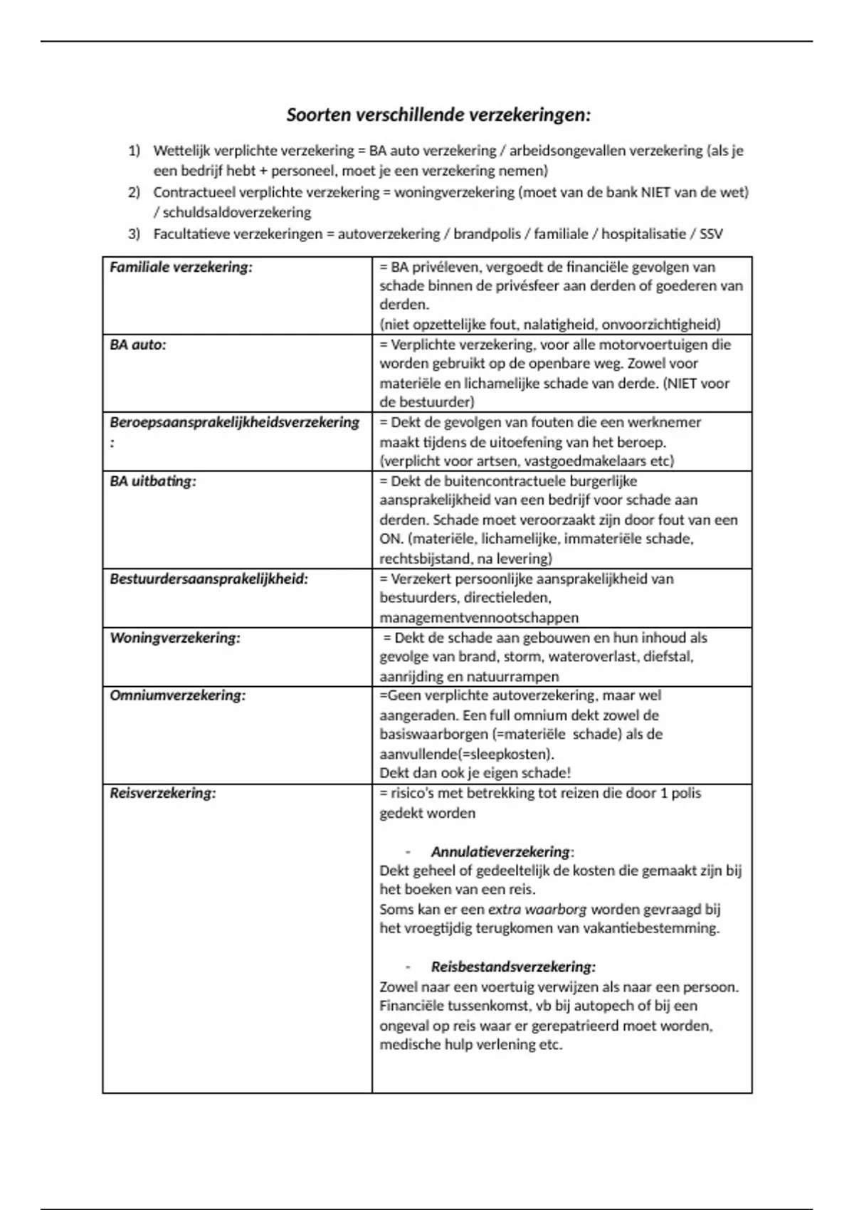 perfecte doc om de soorten verzekeringen te leren ik behaalde en 14/20!