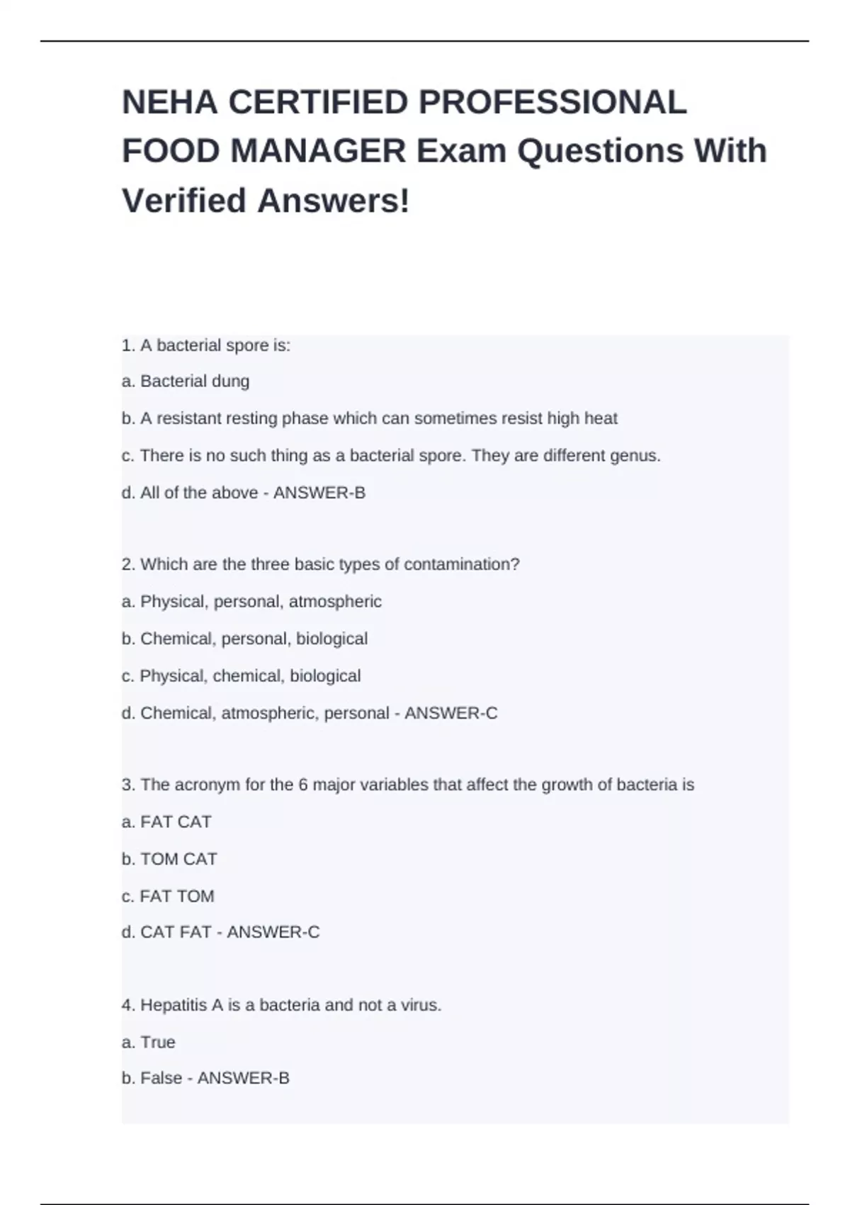 NEHA CERTIFIED PROFESSIONAL FOOD MANAGER Exam Questions With Verified Answers!