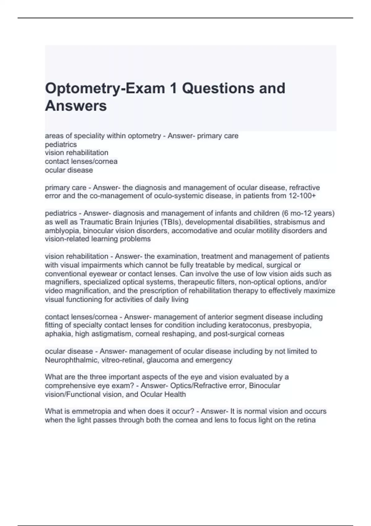 Optometry-Exam 1 Questions and Answers 2024 -Graded A