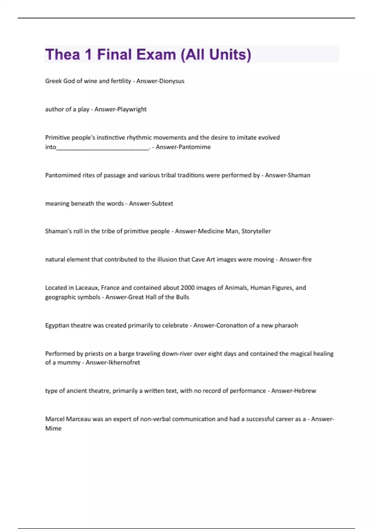 Thea 1 Final Exam (All Units) Questions With 100% Correct Answers!!
