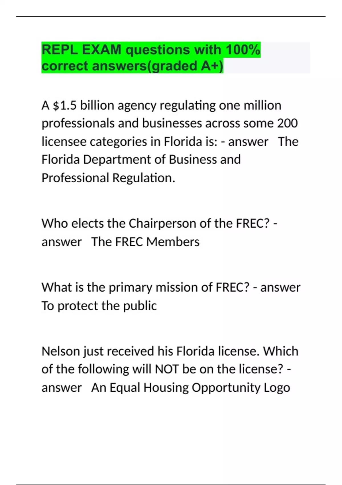 REPL EXAM questions with 100% correct answers(graded A+).
