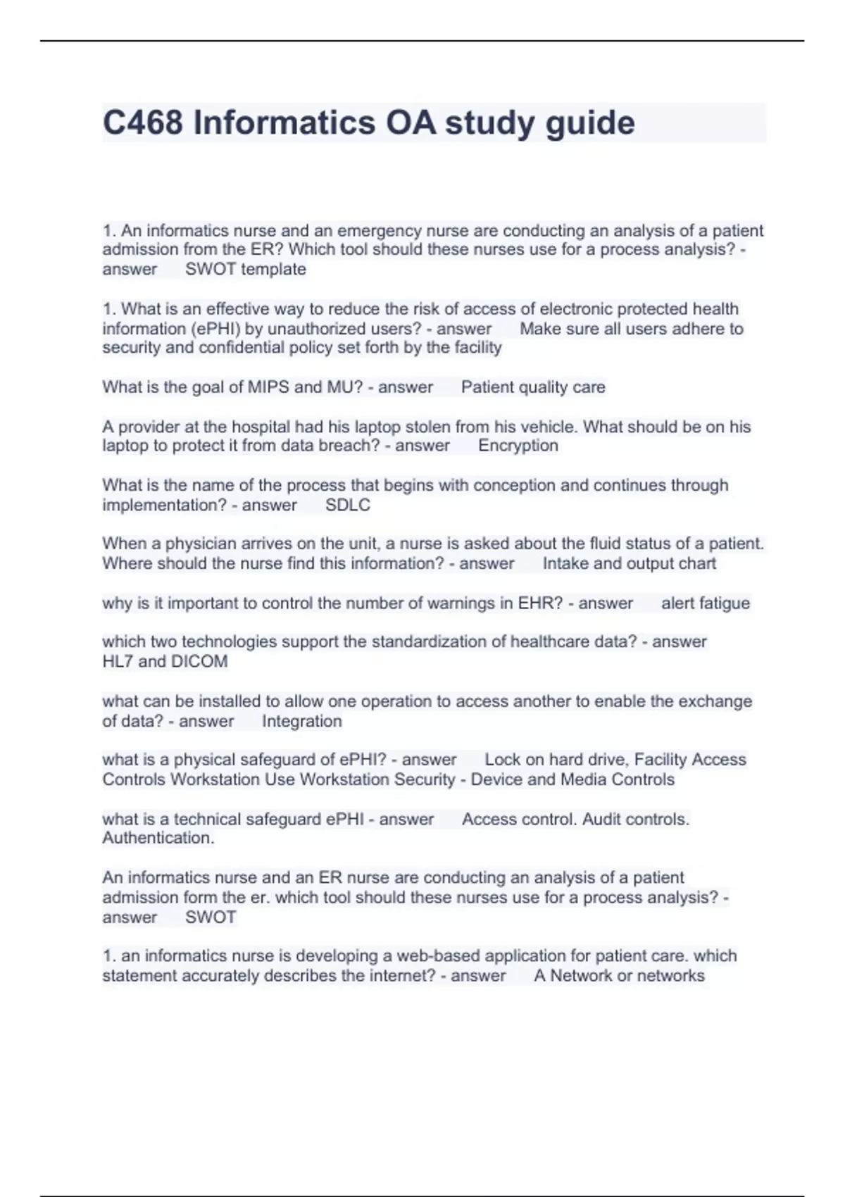 C468 Informatics OA study guide Questions with correct Answers 2024
