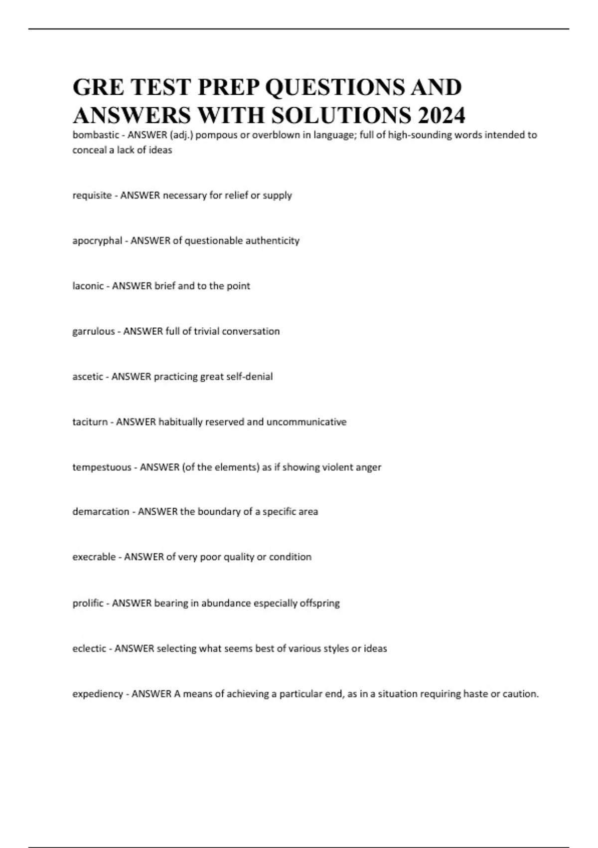 GRE TEST PREP QUESTIONS AND ANSWERS WITH SOLUTIONS 2024