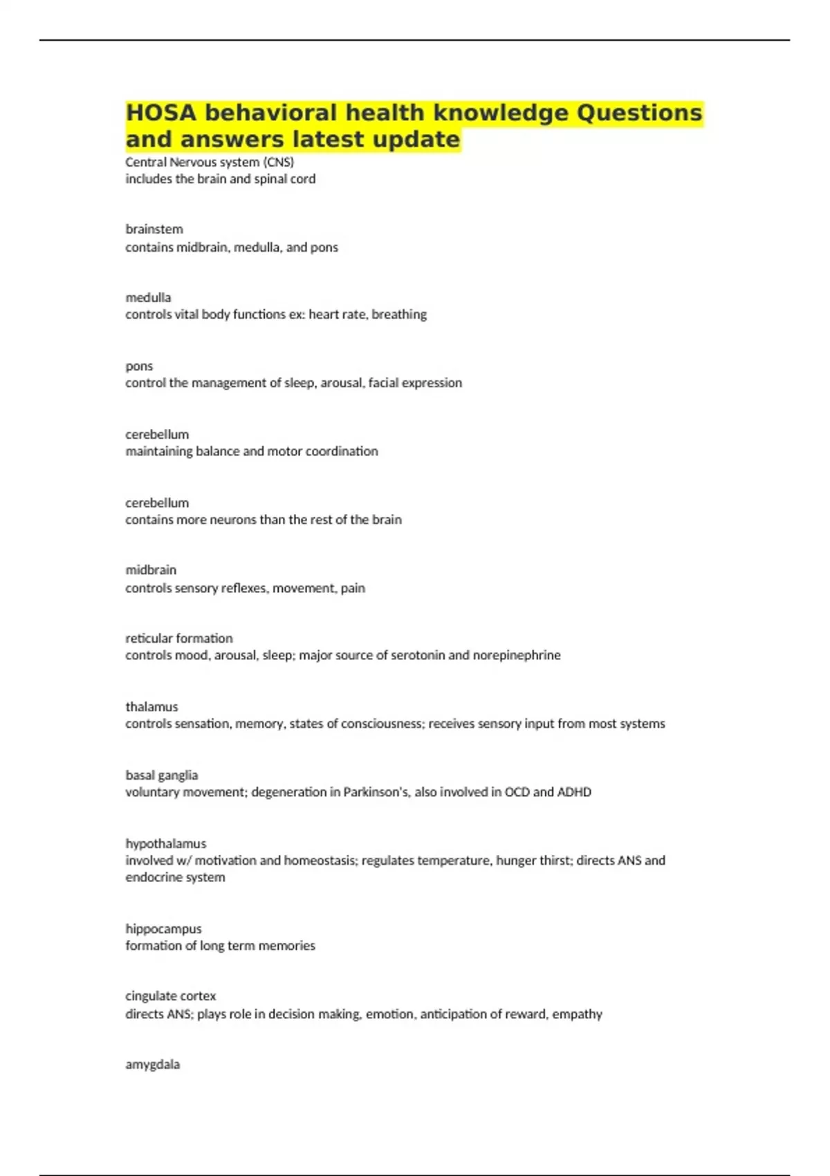 controls sensation, memory, states of consciousness; receives sensory input from most systems