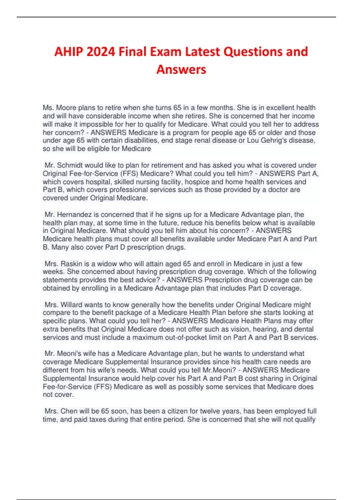 Original Fee-for-Service (FFS) Medicare? What could you tell him? - ANSWERS Part A,